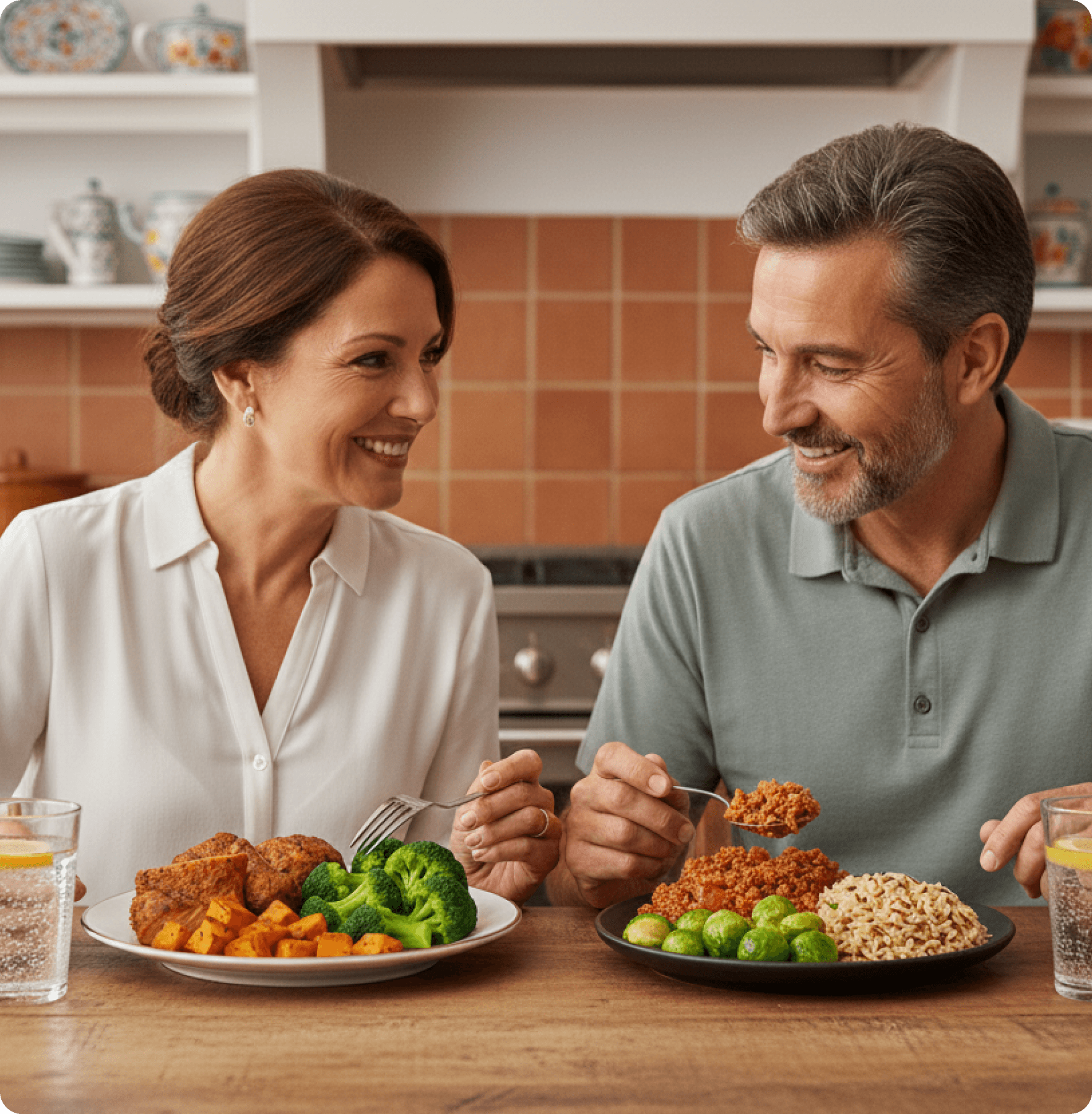 Las comidas llegan frescas a tu casa, listas para calentar y comer. Diseñadas para tu comodidad, para que puedas centrarte en tu salud, no en cocinar.